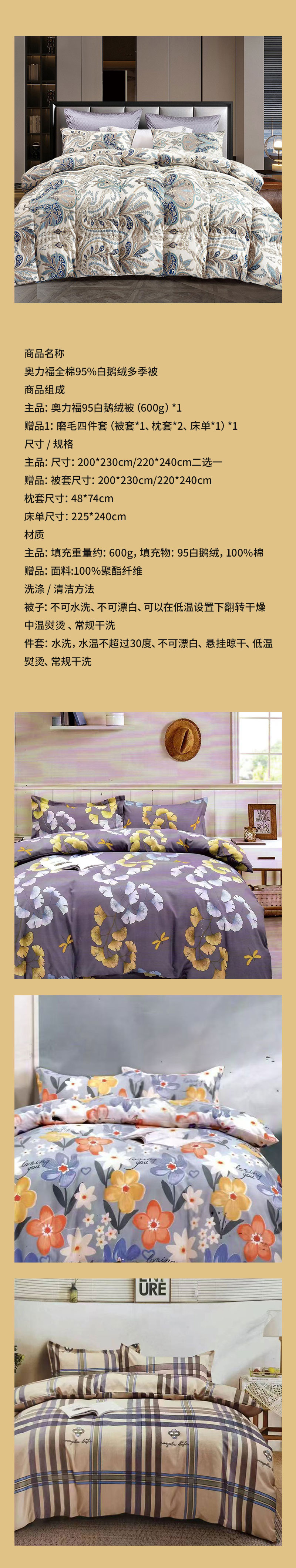 家居家纺> 布艺家纺> 床品件套> 奥力福全棉95%白鹅绒多季被
