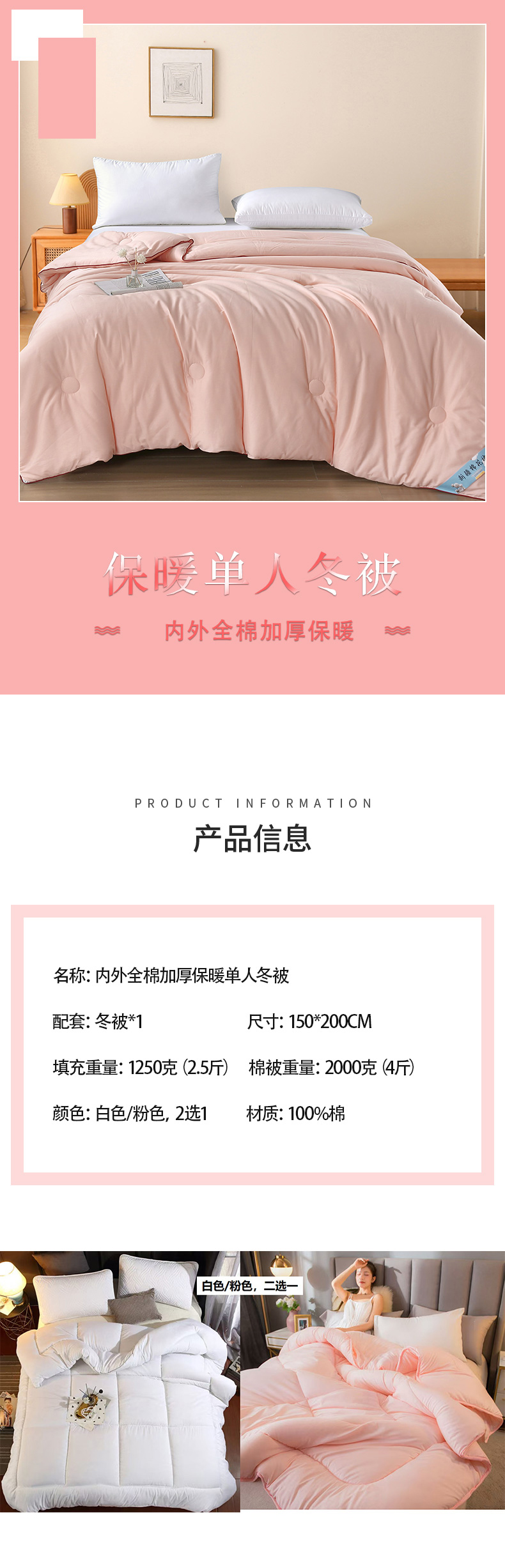 内外全棉加厚保暖单人冬被