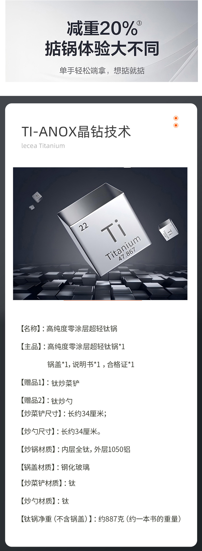 厨房厨电> 厨房用品> 烹饪锅具> 高纯度零涂层超轻钛锅